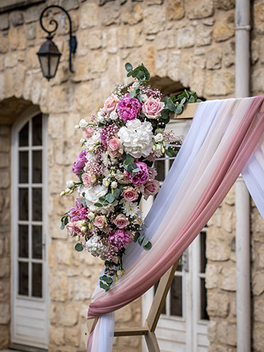 - Matériel à disposition : arche, voilage, vases, lanternes...